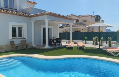 The Benicadims villa is part of the villa complex located in the Dénia area, in the town of Beniarbeig, and is an independent villa with its own private garden and swimming pool.All Benicadims villas are spacious and feature a simple and bright decoration. On the ground floor, there are 2 bedrooms and a bathroom with a shower, a complete kitchen, dining room and living room with access to a covered terrace and garden and pool area. On the upper floor, there is a master bedroom, a full bathroom and a terrace with beautiful mountain views. It has air conditioning in the bedrooms and living-dining room.Less than 500 meters from the villas, you will find some shops, bars and restaurants. Beniarbeig is a municipality in the Marina Alta and a traditional mountain village, located at the entrance of the Vall de la Rectoria, ideal for hiking and mountain biking routes. The Vall de la Rectoria is one of the most beautiful valleys in the Costa Blanca, known for its great views, the beauty of its fields and the tranquility of its towns.Just 10 minutes away is Les Deveses beach, known for being the widest beach in Dénia, as well as for the quality of its fine and golden sand and the transparency of its waters. Dénia and its port are about 12 km away, where you will find a wide range of services, leisure and culture.