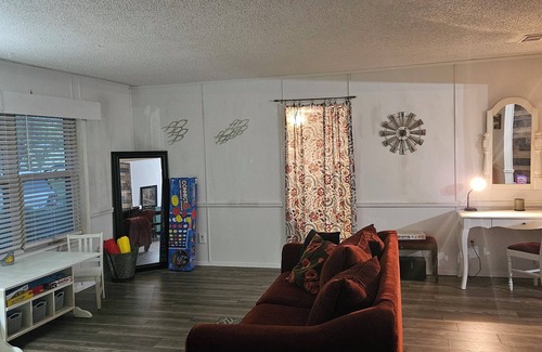 Experience Wills Point like a local in this 2-br 3 bath house. This property features a king bed, 2 full bed, and sofa couch, 3 bathrooms, WIFI, fully stocked kitchen, linens, washer/drier, and plenty of room for parking! 2 living areas and dedicated work space, 7 ft dining room table, 3 ovens, fire pit, BBQ grill, and so much personality! 4 arcade games, board games, dart board, fishing gear, and short walk to the lake...t's easy to see why you'll be able to unwind at our place.
