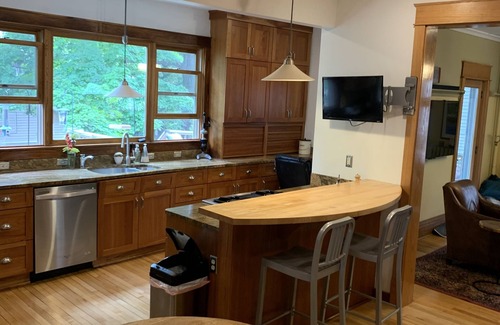 The Beauty of the 1908 Four Square Architecture is complemented with Modern Kitchen and bathrooms. The walk out finished basements sleeps several in open floor plan. The front porch, back deck and garden patio provide many separate places to enjoy the outdoors. The perfect in town location makes walking to restaurants, breweries, and shops the place to stay. This house is a half block from the Third street corridor and 5 blocks from Main Downtown. The home is 4 block walk to Lake Superior beaches The wonderful energy of the home brings groups together as they enjoy Marquette and each other in comfort. We also own and rent the Victorian house next door. Guests can request code to access shared fitness room in rental next door.