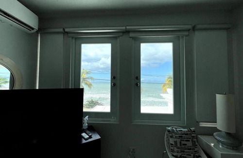 This cozy bedroom has everything you need, including a beautiful view of the ocean right outside your window. This space includes a queen bed, private bathroom and shower, AC, Wifi, and an Apple TV. There is a private pool downstairs open to all hotel guests. This beachfront property is located on Pico de Piedra in Aguada and is just walking distance from several bars and restaurants.