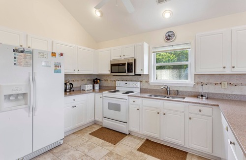 Enjoy plenty of parking on the sidewalk and under the carport before passing by the basketball goal for a little extra outdoor fun on your way in. Enjoy some al fresco dining in the Picnic Area and cook up some fresh, local seafood on the Gas Grill! Don't forget to prepare your fresh catch on the fish cleaning station and rinse off in the Outdoor Shower after a day at the beach. Out back, a spacious green yard is perfect for relaxing with your favorite beach read on the hammock under the afternoon sun after a day at the beach, which is just 5 minutes away!