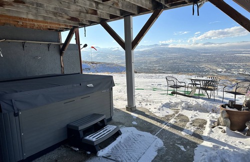 House with 8 person hot tub overlooking the Salt Lake Valley, usually above the inversion and on the edge of a mountain.