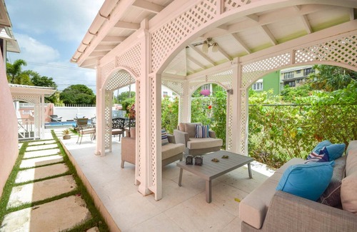 This four bedroom house with a private pool is located in a quiet, safe, established neighborhood just 5 minutes walking from the beach and many amenities on the vibrant South Coast of Barbados.