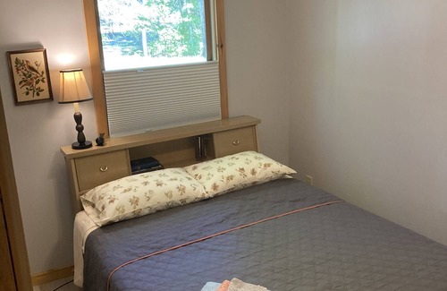 Our property amenities include a common beach area, dock (day only), fire pits and grill area. Easily accommodates groups of 6 with its open space kitchen/dining/living area, three bedrooms and full bathroom. You will appreciate the lake views and sunsets even inside from the large windows. Swim, boat, hike, canoe, kayak or just relax by the campfire taking in a sunset or starry night sky. Fish from your boat or shanty for northern pike, walleye, and perch and more. Enjoy easy access public boat launch (1.5miles) and miles of groomed trails for ATVing, snowmobiling and cross-country/snowshoeing trails.