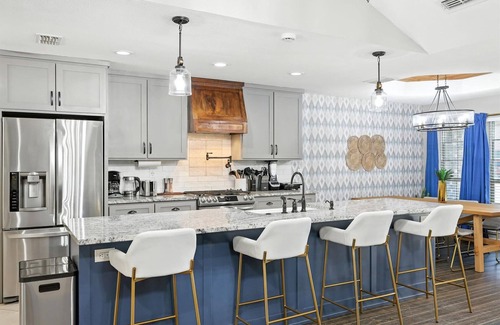 Looking for a nice quiet vacation getaway? This is it! Decorated in a Bohemian-meets-Texas style, let this bright, charming house be your home away from home! Fully decked out with upgrades including a cinema room and a fully equipped kitchen, you’re sure to fall in love with this place’s bold charm. You’ll also want to spend plenty of time in the backyard pool oasis!