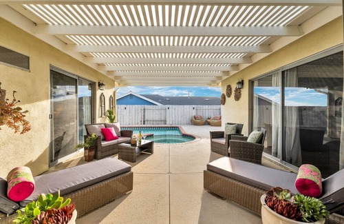 Enjoy the stunning views from the 2nd outdoor patio overlooking the entire conejo valley with city and mountain views. Magnificent McCrea wildlife preserve just at the end of the street features great hiking trails and Malibu Beach is only 25 minutes away. Have fun with the whole family at this stylish home. Note: Heated pool accommodation is $100-$75 a day. Host available most times thru the app. We cover everything. Charming ranch style homes, centrally located in the heart of Thousand Oaks Easy travel around neighborhood, close to everything. Ample parking on site. Outdoor lighting is a remote set on magnet by the light switch.