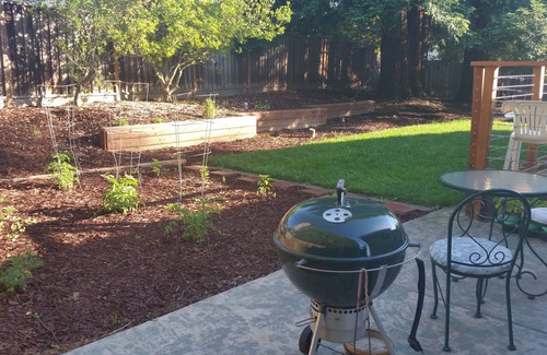Recently upgraded 3BD/2BA in the desirable Mission San Jose district of Fremont. Experience perfect weather, a spacious house, with lovely redwood trees in a huge backyard set up for barbecuing and outdoor dining on a fantastic redwood deck. It is a southern facing house with lots of light, vaulted ceilings, and minutes away from restaurants, coffee shops, hiking trails, and highway 680 / 880 access. The house comfortably fits 8, with 1 Queen, 1 Double, 2 twin beds, and a high-end twin size SF Futon Company chair. All beds have comfortable, clean, high-end mattresses in sealed mattress protectors. We can provide an Aerobed for a 8th person. The spacious kitchen with a new stainless steel refrigerator and dishwasher is well-stocked with a full set of cookware, blender, rice cooker/slow cooker, Oneida cutlery, coffee maker, tea kettle and more! The house has been recently upgraded with air conditioning, ceiling fans, and laminate flooring. A new washer and dryer are located in the garage. Prime location for BART, SF, Silicon Valley, Napa, Monterey/Carmel. A short walk to hiking trails, restaurants & coffee shops!