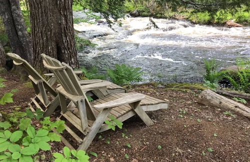 This is a charming cottage with a large deck overlooking the rapids. You will enjoy the sound of the river from the house. It is cozy and comfortable.