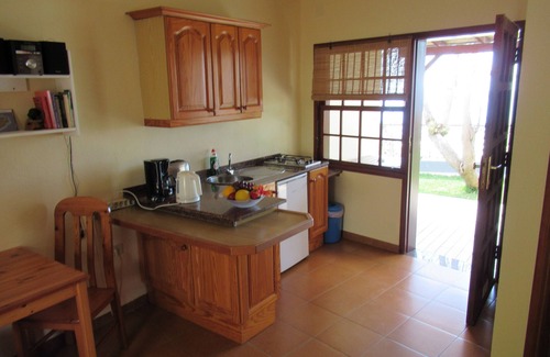 Small and cozy: The Apartment 'Kati' on the top three levels of the apartment complex 'El Gallo' is perfect for up to 2 people who travel a lot and appreciate a quick tidy apartment know. Nevertheless, everything is in place, which ensures a leisurely pace: The built-in living room kitchen is equipped with refrigerator including freezer, 2-burner gas stove, coffee maker, toaster, kettle, with enough cooking utensils, crockery and glassware. Right next door guests can make on a cozy sofa, listen to CDs or watch German television and radio programs on the modern flat screen. In the adjacent bedroom to rest on good 1.90 x2 0.00-meter bed mattresses under blankets in the German standard. The large wardrobe is a safe installed to secure valuables leave 'home' can. Small, but is also fine for the bathroom: The plain white of shower, sink and toilet is immersed by a colorful Tiffany Window with sea motif in a sunny light. From the small, covered with a pergola terrace you can enjoy beautiful