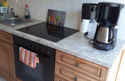 The completely independent 75sqm apartment with its own entrance (east side) is located in my former parents' house, which was modernized in 2022 and is rented on the 1st floor.