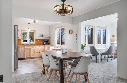 Welcome to our River Retreat! Nestled between Big Rapids and Cadillac, you will be sure to appreciate the calming effects of the Muskegon River. This home is ideal for families with a bunkbed with trundle for kids, and 2 other bedrooms with queen and king sized bed respectively. You will enjoy the sunlight from the living room, where you can play board games or work on puzzles. There is excellent WiFi, a smart TV and a fully stocked kitchen. There is abundant seating options outdoors, including a patio table and a Blackstone BBQ. There are many lawn games available to play on the large flat yard, and plenty of parking space. The garage has been transformed into a rec room, complete with foosball table and dart board. Enjoy making smores in the evening and sit around the firepit!