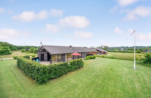 There are 3 bedrooms, all with double beds. The large bathroom houses an infrared sauna, which provides a really cozy warmth. Outside you have a good terrace, part is under roof. In the comfortable garden furniture you and your family can enjoy nice hours. Here you will also spend pleasant barbecue evenings. Just a few minutes walk away is the Rørbæk Sø, where fishing is allowed in part of the lake - there you can then also buy the fishing license. In the house you therefore have a large freezer and a fish cleaning place at your disposal. Here are also beautiful forests for hiking and cycling.