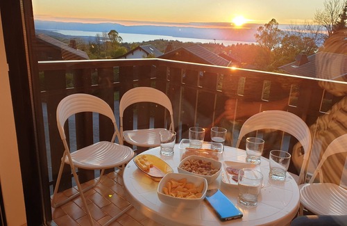 (Text automatically translated) conveniently located 300 meters from the shops and ski mécanniques. This fully renovated apartment shoed you discover this part of exeption, overlooking Lake Geneva and the Swiss Alps you follow the sun's movements in Switzerland in the early morning, to fine the Jura mountains to the dark. Lovers naturel'hiver you will ski on the balcony of Geneva. summer, captivated by the mountains and the lake you will be transported by the beautiful landscape, discovering Savoyard villages, Lake Geneva, dignent the Croisette. For you ladies let yourself be overwhelmed by this beautiful city of Geneva located 50 KM, and do not forget the spas of Evian. Décressif Price