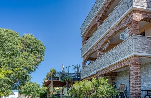 This newly furnished apartment in the quiet area of Mugeba offers the perfect place for a relaxing holiday. The apartment has one comfortable air-conditioned bedroom and a double bed, a spacious living room (sofa for two additional people) and a fully equipped kitchen. The living room opens onto a balcony with a beautiful panoramic view of Vrsar, Funtana and the sea in the distance.
