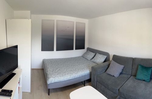 The holiday apartment Studiostyle with 1 Bedroom, which is situated in Klaus, overlooks the nearby mountain. The 24 m² property consists of a living room, a fully-equipped kitchen with a dishwasher, 1 bedroom and 1 bathroom and can therefore accommodate 4 people (the accommodation is primarily suitable for 2 adults and 2 children). Additional amenities include high-speed Wi-Fi, heating as well as a TV.
