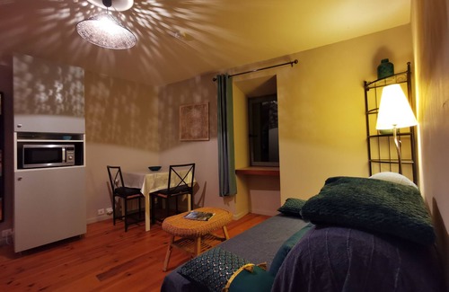 Apartment with private entrance, on the 1st floor (level 2) of gîtes "Un Jardin dans la Falaise" (chez our site or social media for more info). Air-conditioned room. Private bathroom with hairdryer. Kitchenette in the living room with microwave, induction hob, hood, coffee maker, kettle, toaster, fridge. Terrace reserved in the garden with umbrella, relaxing chairs available.