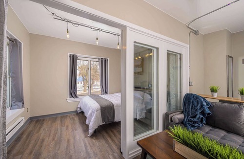 Discover the charm of our remodeled apartment in downtown Appleton. Experience the city's energy with events and attractions nearby. The apartment has an industrial-modern design. Performers at the PAC will love the location, a minute's walk away. Enjoy dining and entertainment options. Free parking is available with a provided pass.