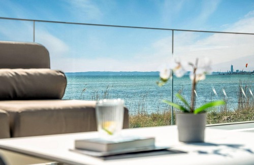 Step into a particularly modern vacation home with a spacious living room and a generous terrace that offers you a breathtaking sea view. Here you can make yourself comfortable with a warming fireplace and underfloor heating with a glass of wine in the living room. The high ceiling and exciting construction of this offers you enough space to breathe and equally a spacious feeling. Thanks to the large window fronts, an incredible amount of light enters the room, which adds to the friendly flair. The open terrace with garden furniture and barbecue is a great place to enjoy a barbecue or a delicious breakfast.