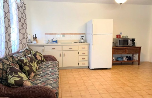 The lower level of the villa consists of two more suites with their own kitchens and-of course- ocean views from inside the rooms or on the 2nd level balcony. One sleeps 4, with a private bedroom with king bed and sleeper sofa in the living area. The other is a studio that can also sleep 4 on king bed and sleeper sofa.