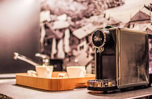 The Garden Suite is well-equipped with various amenities to ensure a comfortable vacation experience. The small, open kitchen is fitted with an oven, dishwasher, four ceramic glass hob hotplates, a toaster, kettle, and an electric coffee machine. Complimentary Nespresso capsules for the coffee machine are provided. The suite also features underfloor heating for added comfort. Outside, you can enjoy a large terrace with a south-west facing position, a partially roofed large patio, terrace furniture, a barbecue, and two deck chairs.