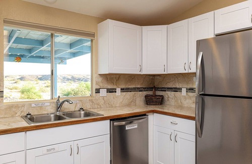 Every room has been updated with new floors, new paint, and new fixtures. You'll have the entire property to yourself, with plenty of room to enjoy gorgeous Arizona sunsets and twinkling night skies. From the porch you can see cactus and palm trees, plus roadrunners, hummingbirds, and wild burros. Enjoy the quiet and the peace that's unique to the desert Southwest.