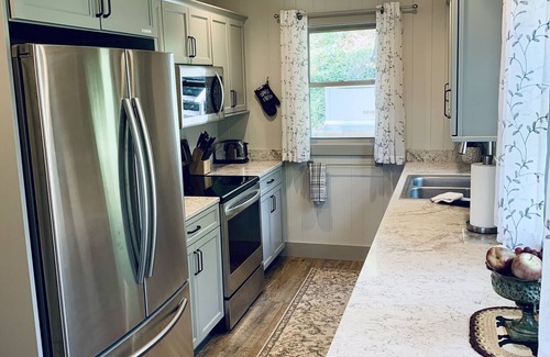 This 3 level house has everything you will need to make you feel at home. On the Main Level you and your guests will enter the front door to a fully equipped Kitchen, Family Room with a 60 inch Smart TV, French doors that lead out to the multi-level porch with a brand new gas grill, a Dining Room Area, and the Master Bedroom with an attached bathroom with a shower and tub combination.