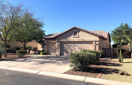 2 bedroom, Split floor plan. Master bedroom with walk in shower and King size bed, 2nd bedroom with Queen Memory Foam adjustable base bed. Den is set up with computer desk, couch, chair and ottoman perfect for reading. Kitchen overlooking the Lone tree Golf Course. Extended covered patio with roll down shade screens for enjoying the Arizona desert weather.