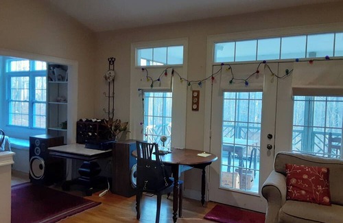 Beautifully furnished home in Sewanee. Elegantly appointed house with master bedroom, master bathroom, study/office (which can be a bedroom), living room, dining room, kitchen, two bathrooms upstairs, downstairs studio with sun room. Garage. Access to biking and hiking trails behind the house, and the house is in area of the Equestrian Center. Walking and biking distance to campus.