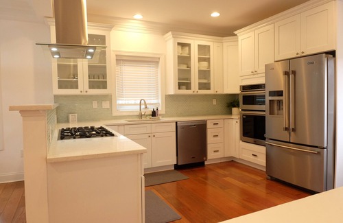 Modern house in the heart of Arlington, VA. Minutes away from Washington DC. 0.8 mile away from Clarendon metro station. Newly rebuilt home with five bedrooms, four bathrooms. Three bedrooms upstairs. Master suite with attached office/sitting room. High end master bathroom with jetted soaking tub, quartz counters, his and her sinks. Two more spacious bedrooms on the upper level with laundry closet Head down to the basement to an expansive bonus living area, two massive bedrooms, and walk up access to fully fenced backyard. The open floor plan on the main floor with center piece dining area, gourmet kitchen, living room and family room which provides cozy atmosphere for family and friends gathering. A five minute Uber to Reagan Airport and a quick electric scooter ride to fine dining, Whole Foods grocery store and some of the best night life Virginia has to offer!