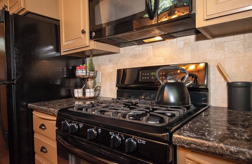 The KITCHENS have a dishwasher, microwave, gas range, and oven, refrigerator, toaster, coffee maker and are equipped with plenty of pots and pans, dishes, silverware, and accessories. The Pinecone Cottage is especially coffee-friendly, with an espresso machine!