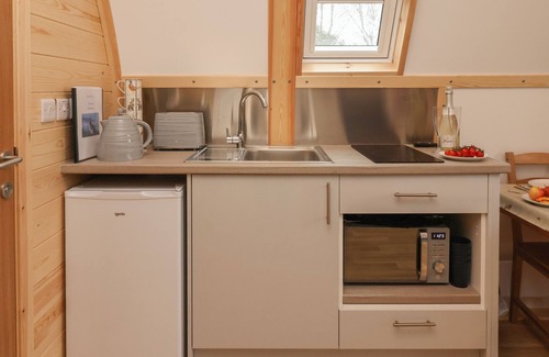 The living areas in this glamping pod consist of a studio-style layout with double bed, a kitchenette equipped with two hot plates, microwave, fridge with ice-box, toaster and kettle, a dining table for four and a sitting area with double sofa bed and TV. Outside there is parking available and a front gravelled area with barbecue and picnic table. Within 4 miles there is a shop and 2.2 miles a pub. Sorry, no pets and no smoking. WiFi, fuel and power are all included in the price. Make memories in the countryside at Bouquet. Note: There are two steps up into the property, please take care.