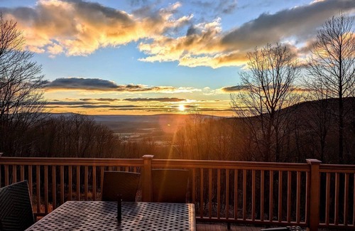 Enjoy breathtaking views from the top of Bunns Mountain on the oversized deck! This well appointed home is ready for you to come enjoy much needed rest and relaxation anytime of the year. The home sleeps 12 and is minutes from the lake, fishing, boating, hiking, resort area, and many other outdoor activities. Raystown Resort is an 8 minute drive from the home! The game room with pool table, foosball table, Pacman game machine, and 75" TV is perfect for entertaining the whole family. There are also plenty of board games, cornhole boards, outdoor games, and an outdoor fire area. In chilly weather enjoy the 2 indoor fireplaces! The 4 bedrooms are very spacious and clean. We pride our selves on being very clean. Every linen, pillow, mattress cover, blanket, and quilt is sanitized and changed prior to your stay. Relax in the master bedroom whirlpool indoor tub after a long day! The main floor was recently remodeled to add another walk in shower. The home now has 6 walk-in showers, yes that's correct 6 walk-in showers and 1 of them is handicap equipped!