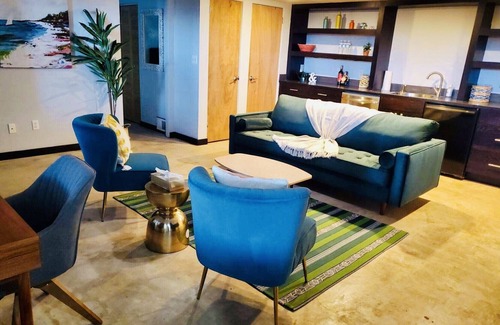 Beautiful and eclectic, this house is perfect for adventure or relaxing. This beautiful treehouse boasts two separate living spaces. In addition to the kitchen, living room and bedroom upstairs, there is a separate entrance for the downstairs living area that has its own kitchen, living and bedroom. Parking space is generous with the carport and driveway. There is also garage space that can be used for storing your items and use of another refrigerator.