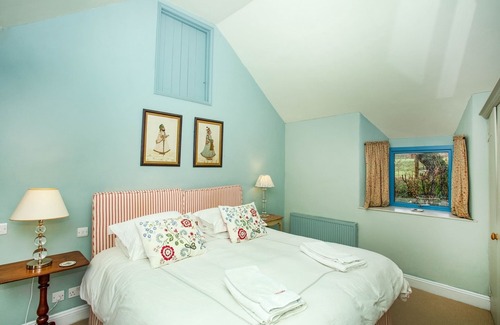 Serene, Stylish, Distant Sea Views and Beautiful Colours. This adorable, award winning, two storey cottage has been lovingly restored in harmony with its surroundings. The charming low beamed sitting room with limed oak floors and deep comfortable sofas is set around the wood burning stove and inglenook fireplace. Blue painted French Windows open onto the flagstone terrace with BBQ. Just a couple of steps up is the master bedroom with its duck-egg blue walls, a view over the fields and a fantastic walk in shower. Two further bedrooms lie upstairs – one with a double, the other with twin beds and a bathroom to share – see the owner’s drawings on the walls. This beautiful cottage has tranquil colours, fresh fabrics and a clever mix of old and new. The gardens are a delight at all times of year and change with the seasons. There are breathtaking views across the Llyn Peninsula from the patio where you can watch splendid sunsets. Seclusion is guaranteed!
