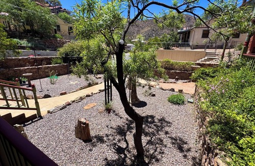 Welcome to the Historic Wills House-Agave Casita. Built starting in 1902 and nestled in a stone walled courtyard, this former brothel has both vintage charm and modern conveniences. Situated in upper Brewery Gulch, it is walking distance to Old Bisbee’s entertainment & shopping districts, while being just far enough to be tranquil at night. Enjoy cooking in our full kitchen and relaxing & birdwatching on the porch . We look forward to hosting you so come down, slow down, and stay with us awhile.