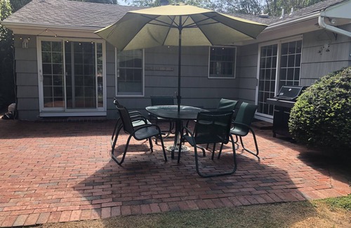 Charming 4 bedroom, 3 bath home located just one short block to the heart of East Hampton village. The kitchen is renovated with all new appliances and granite counter tops. The house is uncluttered and very spacious. It includes 3 distinct living spaces plus a finished basement with all the amenities. The house boasts all the comforts of 'HOME' with a Pottery Barn feeling. The property is extremely private and secluded. You can walk to the heart of the village each morning for your coffee and take a lap through town.