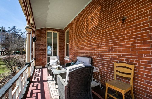 This charming 3400 sq ft. historic home has all the amenities you will need: 4 large spacious bedrooms, dining room, full kitchen, two spacious seating areas, pellet stove, work space with desk, laundry, hot tub, 2 car garage, WiFi, an open air & a screened in porch, outdoor fire pit area.