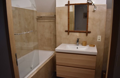 On the first floor there are two bedrooms, each with their private bathroom with shower and toilet, one of which has a large bathtub.