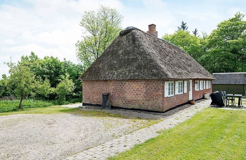 At the end of a cul-de-sac and towards a peaceful by Rudbøl area lies this charming, thatched cottage. The house offers three good double bedrooms, a large and bright bathroom with shower and kitchen and dining room, from which there is access to a secluded, east-facing tiled terrace with good opportunity to enjoy your morning coffee. Please note that there is free access to the communal swimming pool at the campsite. The house is incl. Linens and towels. Not for rent to youth groups.