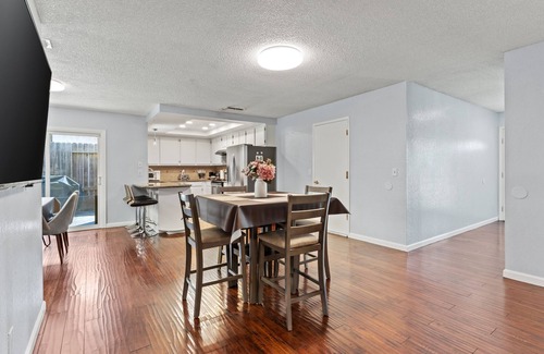 Welcome to your Citrus Heights retreat! This stylish 4BR, 2BA home features a bright open kitchen, cozy family room with 65” Smart TV, high-speed Wi-Fi, and plush queen beds. Enjoy a private backyard with a pool and patio. Just a 5-min walk to Starbucks and a local gym, and minutes from I-80, shopping, and downtown. Nestled in a quiet, family-friendly area—perfect for families or business travelers!
