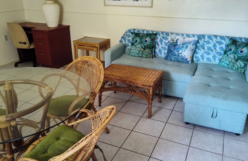 Escape to this peaceful condo in picturesque Frigate Bay. This excellent property features a cozy bedroom, a comfortable living room with a futon, and all the essentials like WiFi and AC. Guests can unwind in the tranquil surroundings and enjoy a relaxing stay. Experience the magic of Frigate Bay at our condo.