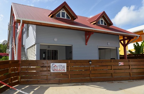 Recent construction, Creole architecture wooden building on 2 levels in the middle of a tropical garden, consisting of 4 T2 apartments of about 50m2 each. Each apartment has an air-conditioned bedroom and a fully equipped kitchen.