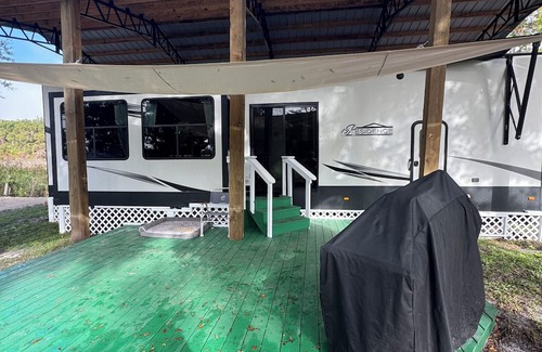 Cozy campground in charming Pierson with AC, WiFi is located in Pierson. Cozy campground in charming Pierson with AC, WiFi provides accommodation, featuring Fireplace/Heating, Pet Friendly, Designated Smoking Area, among other amenities. This RV Rental features Fireplace/Heating, Pet Friendly, Designated Smoking Area, to make your stay a comfortable one.