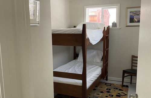 This newly renovated 3-bedroom lake house all have Cozy beds, bedroom one has a queen size bed, bedroom two has another queen size bed and the third room a bunkbed. Just the right size for a family to enjoy create memories together. The kitchen is well-equipt for cooking meals inside or use the grill on the patio. The home is air-conditioned.