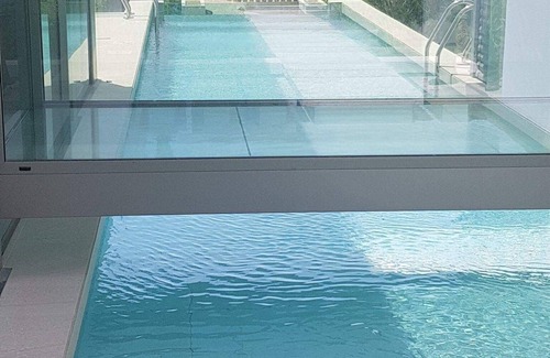 Amazing modern house , with panoramic views over the golf course and toward the sea.A glass walled pool coming along with and glass bridge over the swimming pool which takes you from the lounge to master bedroom.Domotics are also a part of features: video door entry system, digital control & programming of lights, blinds, heating, AC,& underfloor heating. Cinema/ game room/ office/ gym. 4 bicycles . Buggy can be rented from Golf club as well along with clubs.Can accommodate 6 persons and maximum 8.