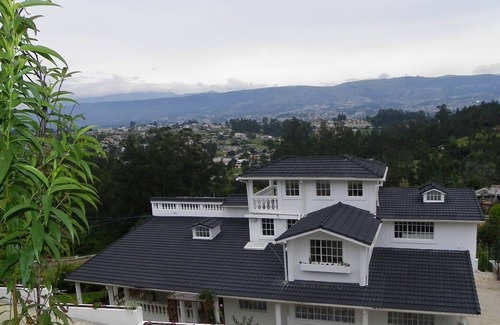 Our property spreads over 3000 sq. meters and its several terraces offering beautiful views of the surrounding mountain and the capital Quito. With a main house, a caretaker's cottage, a very large area for barbecue built in a rustic style, a beautiful swimming pool, a children playground, a grass pitch for ball games, 2 small fish ponds where we grow trout and tilapia, a wall with natural stones gives the back of the garden additional beauty. There are fruit trees along the front wall and around the property, such as oranges, lemons, peaches, avocado, plum, mangoes, blackberries, grapes, passion fruit, etc. The variety of wonderful flowers and ornamental plants further compliment the garden throughout the year.