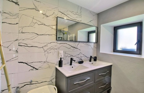 The cottage is a luxury house combining the charm of the old and modern. Perfectly equipped, the cottage offers you: - On the ground floor: a living room with fitted kitchen, living room and lounge, then accessible by a step: a bedroom (1 bed 140x190), a bathroom (walk-in shower) and a toilet separated with washbasin. - Upstairs: 2 bedrooms (each with 1 140x190 bed), a lounge area on the mezzanine and a separate toilet. Outside: on an enclosed garden of 150 m², you will enjoy an equipped wooden terrace. The cottage is adjoining another rental, parking is shared as well as a 2nd garden of 1500 m² (unfenced) In southern Brittany, come and take a breath of fresh sea air on our magnificent coastline: between fine sandy beaches and the imposing cliffs of the wild coast of Quiberon, you will be spoiled for choice! You can also visit the many islands of Morbihan thanks to the various regular shuttles. Discover must-see tourist sites such as the megaliths of Carnac and the islet of Saint-Cado. Further east is the Gulf of Morbihan, Vannes and its old fortified town remarkable for its architecture with its colorful half-timbered houses.