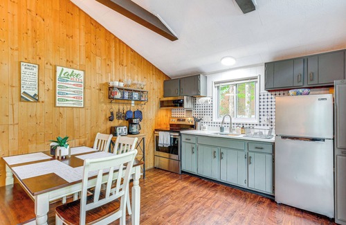 Experience a fun-filled getaway at this Pocono Lake vacation rental! Situated on a quiet property in the Arrowhead Lake community, this quaint 2-bed, 1-bath cottage makes it easy to enjoy recreation and relaxation. Spend your days enjoying community amenities like kayak rentals, lakes with beaches, or 3 outdoor pools. After shredding the slopes at Jack Frost Ski Resort or swimming at Kalahari Indoor Waterpark, dine al fresco on the deck before heading inside to unwind in the cozy living room.