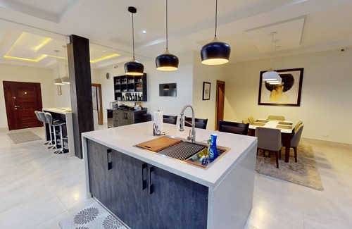 Welcome to our stunning three-bedroom, 3.5 bathroom apartment, designed with a North American open-plan layout to encourage family and guest interactions, making it perfect for warm, enjoyable gatherings. Located in the upscale heart of Abuja city. This move-in ready apartment is fully equipped with all the essentials to ensure that both foreign and local guests feel right at home. Each room is thoughtfully furnished, creating a welcoming atmosphere that blends comfort and style.