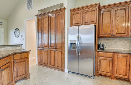Pack your bags and bring the family along when you book a stay at this lakefront 4-bedroom, 3.5-bath vacation rental! This Alvarado home boasts a game room with an air hockey and pool table, a fully equipped kitchen with stainless steel appliances, a patio with a grill and fireplace, and a yard with a beach and a brand-new dock. Spend your days swimming, paddleboarding, or canoeing in Alvarado Lake and playing in the yard. Enjoy a cookout on the patio, and then roast marshmallows over the fire.